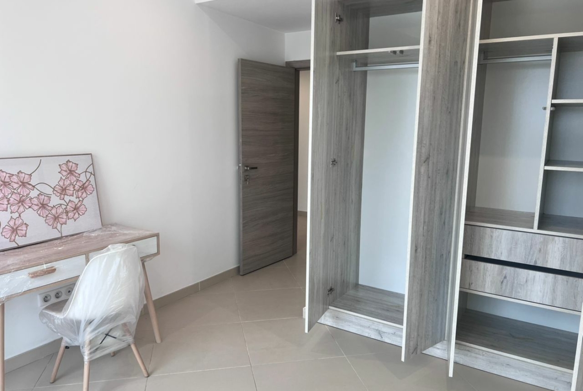 Un bien de 105m2 neuf et jamais occupé, dans une résidence hautement sécurisée, avec gardiennage, caméra de surveillances, .. L’immeuble dispose de deux ascenseurs, une réception, deux places de parking au box, …
